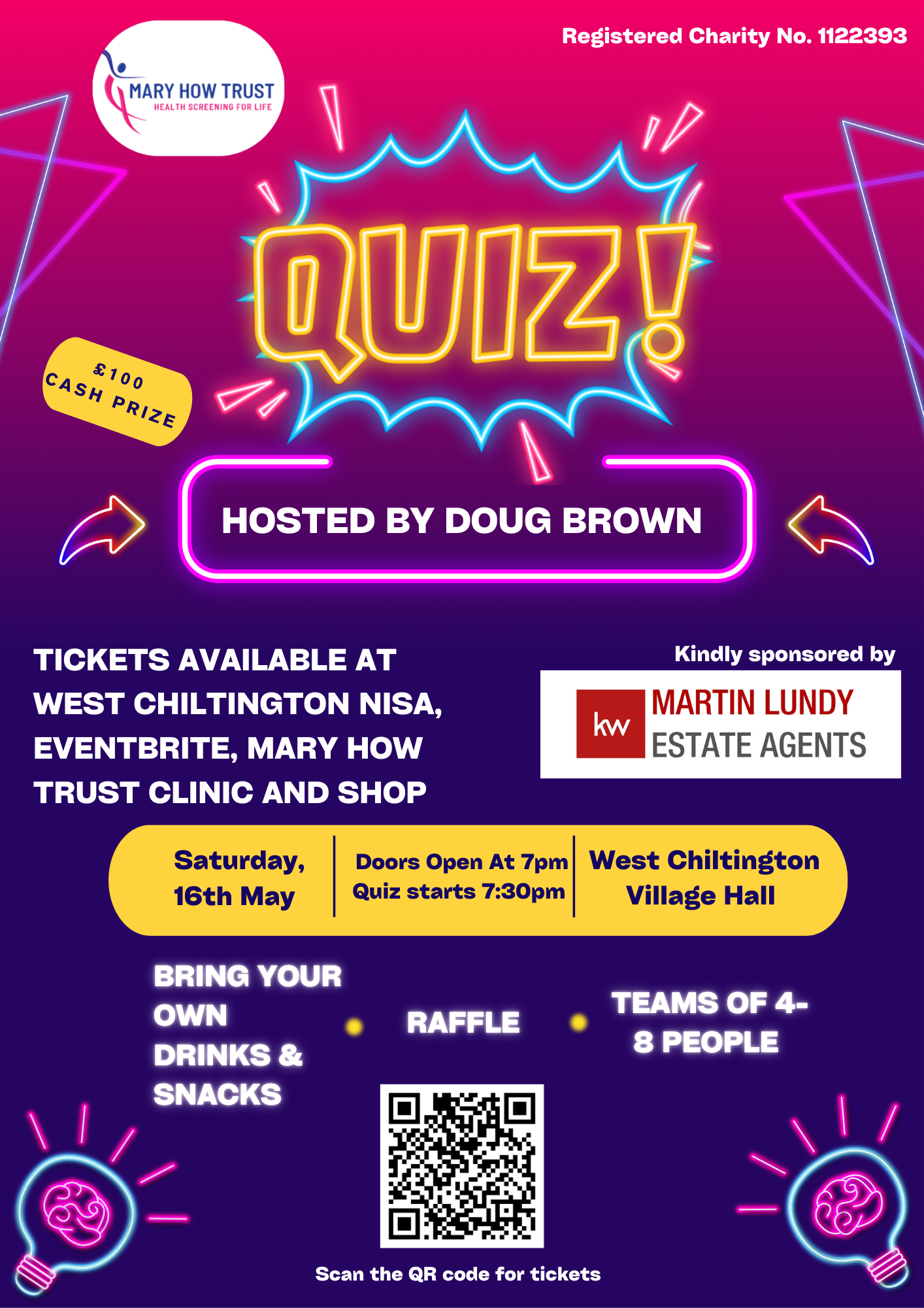The next Mary How Trust quiz night is being held at the West Chiltington Village Hall on Saturday 16th May.
